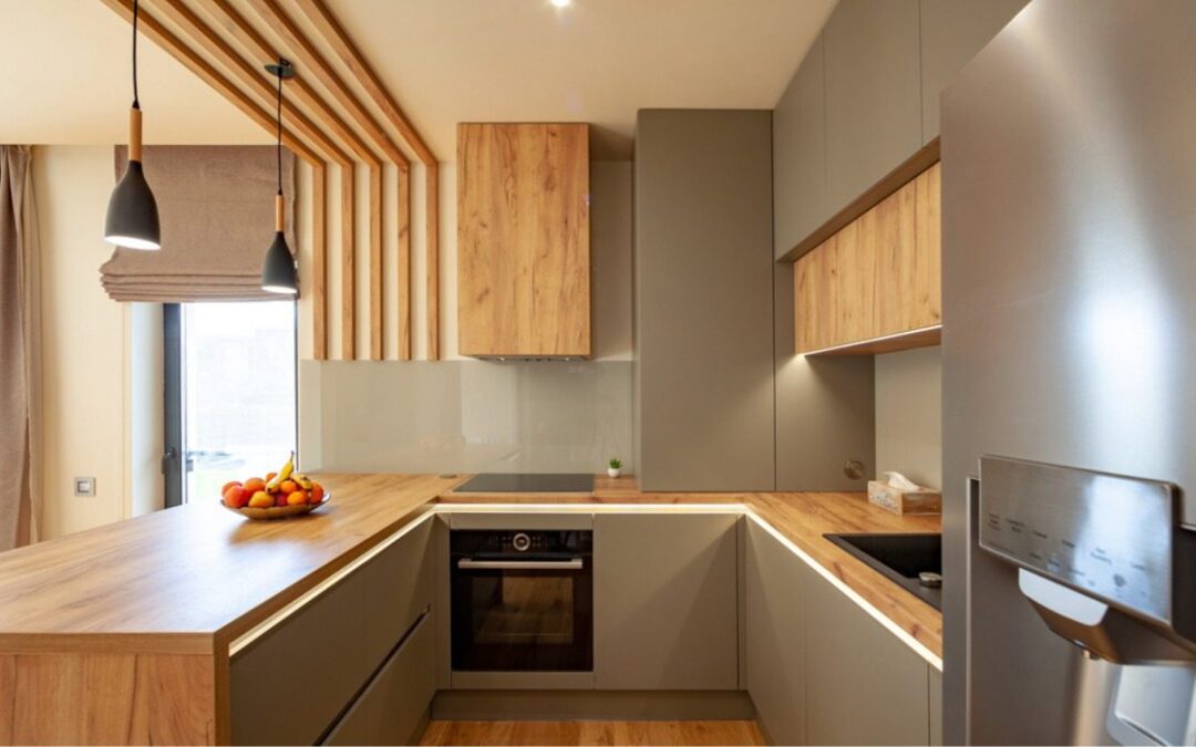 A U-shaped modular kitchen offers maximum storage and counter space, ideal for passionate cooks or large families.